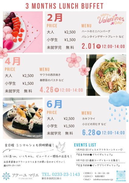 毎月のランチブッフェ情報や、様々なイベント情報を
